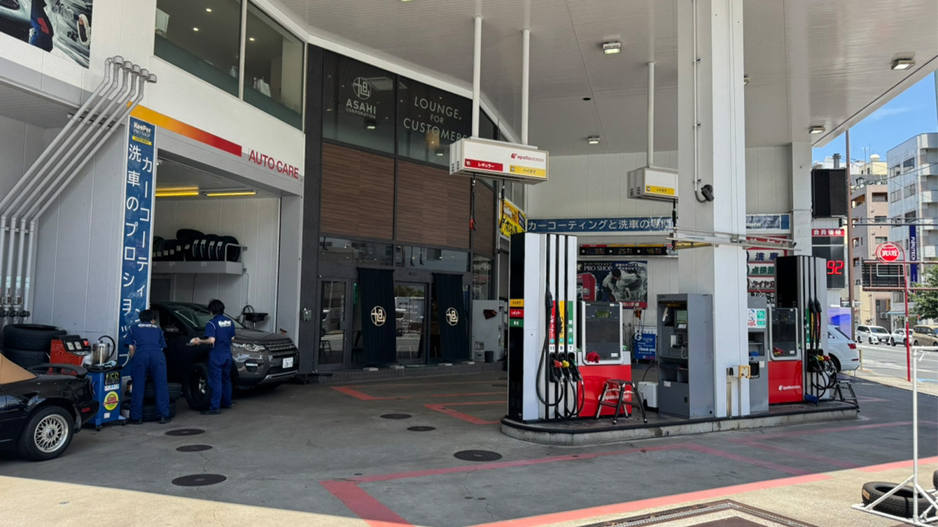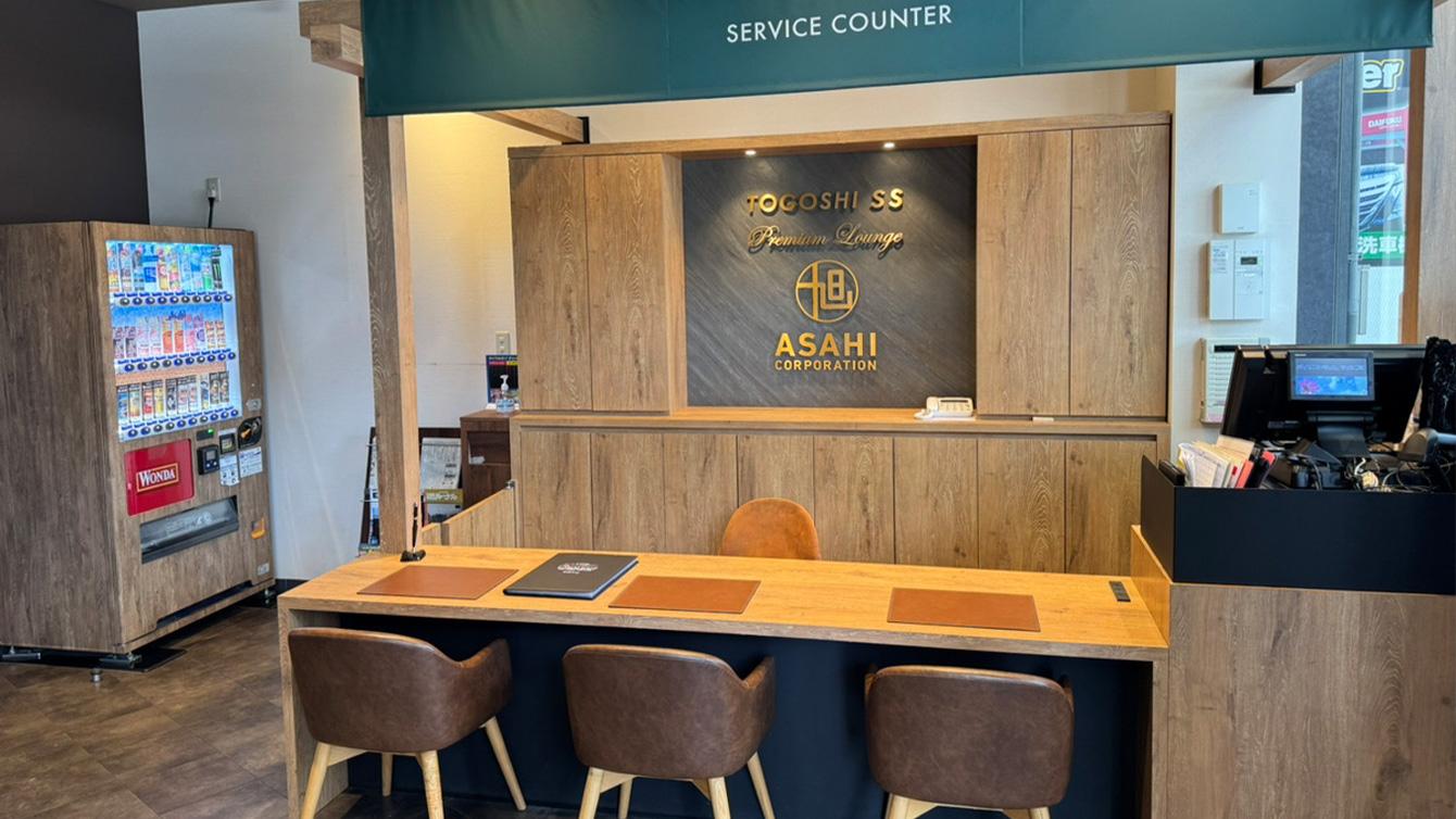 大田区中原街道沿いに面したお店です。2025年5月に全面改装をし、プレミアムラウンジ戸越SSに続くプレミアム仕様になりました。ラグジュアリーな空間と寛げるゲストルーム、洗練されたサービスでお客様をお迎えします。VIP会員制度導入店舗ですので、大切なお車の継続的サポートもお任せください。